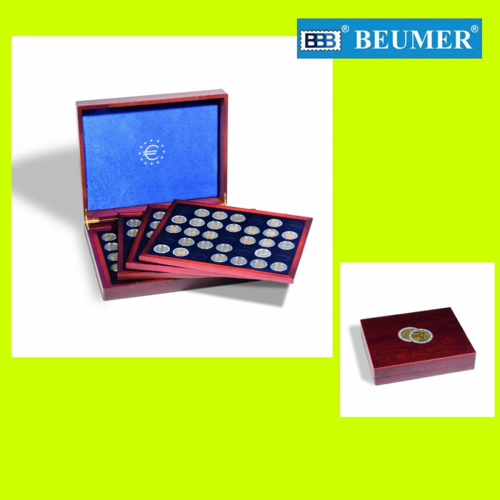 Estuche VOLTERRA QUATRO con 4 Bandejas para 140 monedas de 2 €uros en cápsulas.Tamaño: 330x70x270mm.