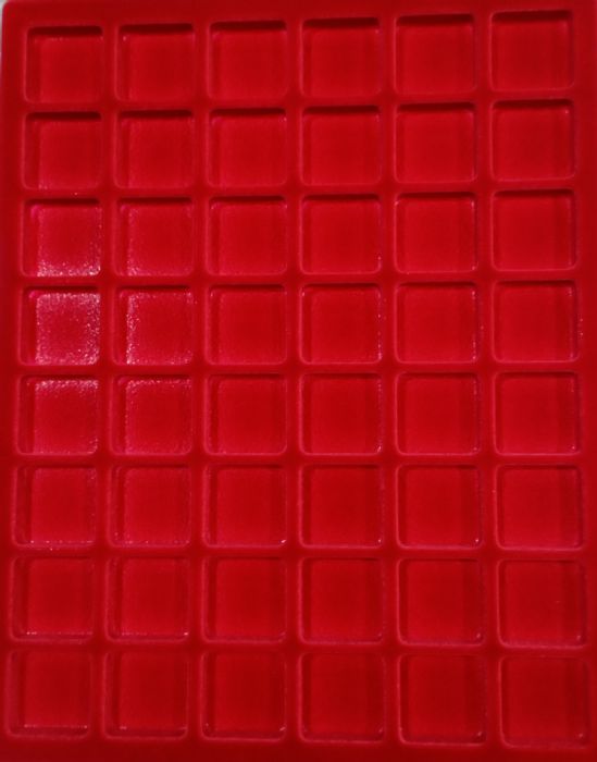 Interior bandeja rígida y Hojas Placas. 48 Departamentos. Flocado Granate.