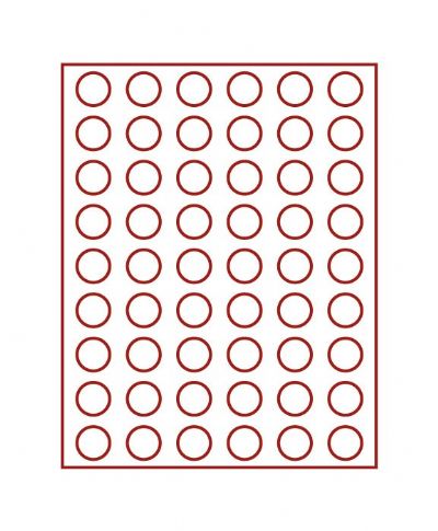 Bandeja para monedas con divisiones redondas para monedas, cajón de color gris claro con plantilla de velours roja y carcasa transparente. 54 divisiones Diámetro 26,75 mm Ancho/Profundidad/Algo 236/303/20 mm