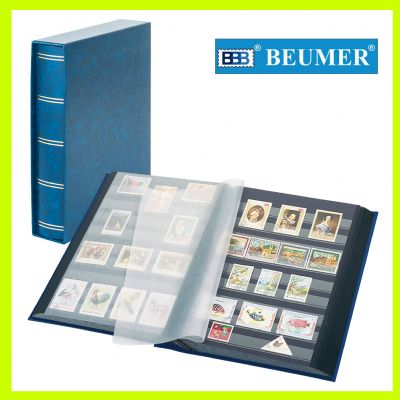 Clasificador LINDNER. 60 Páginas.HOJAS NEGRAS.Color Azul.+ CAJETIN PROTECTOR