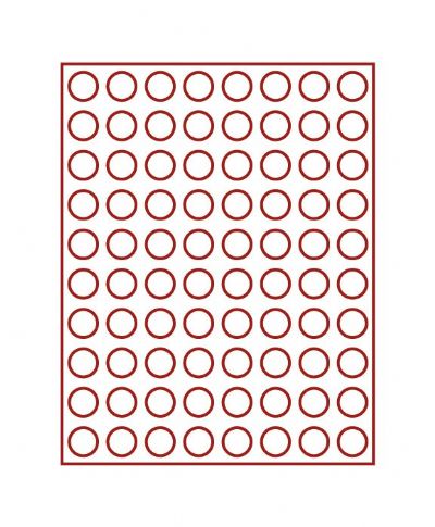 Bandeja para monedas con divisiones redondas para monedas, cajón de color gris claro con plantilla de velours roja y carcasa transparente. 80 divisiones Diámetro 23,5 mm Ancho/Profundidad/Algo 236/303/20 mm