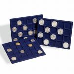Bandejas formato S con superficie en imitaicón a terciopelo azul. Indistintamente para monedas en cápsulas ó sin cápsulas; compatible con los maletines de la serie S.