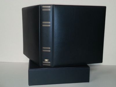 Album Mamut sin Título. 4 Anillas 80/80/80 Universal. Gran Capacidad.Anilla de 45mm alto. Fabricado en polipiel bitono espumado; con marcas grabadas en oro inalterable por alta frecuencia. INCLUYE funda cajetín también en polipiel idéntico al álbum, lo que le confiere una gran prestancia y calidad. Al no tener título alguno; permite al coleccinista una adaptación a aquello que mejor le convenga. Tamaño: 32x30x9 cm. Peso: Color: Negro.