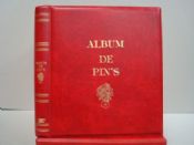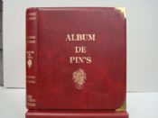 Album para PINS. Tamaño 27x33cm (Folio). 4 Anillas 80/80/80. Fabricado en polipiel espumado bitono.Marcas y Logos en oro inalterable por alta frecuencia. Sin Cajetín. Color: C.V. Incluye 5 hojas granates