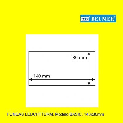 Fundas LEUCHTTURM, modelo BASIC; para Billetes. Tamaño: 146x84mm. Soldadas por 3 lados y libre el superior. Paq.50 unidades