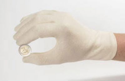 Guantes de algodón 100 %. Color natural, sin blanquedadores artificiales. Talla única. De la mejor calidad. ! Sus monedas se merecen ser tratadas con el máximo cuidado ¡.
