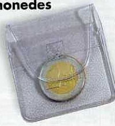 Estuche plástico transparente con solapa de 47x47mm. Una buena forma de guardar monedas individualmente sin tocarle con las manos directamente. Permite un cómo archivo y manipulación. Son del mismo tamaño que los cartones de monedas por lo que pueden archivarse en los mismos soportes: Albumes de bolsillo, Albumes medianos y Folio; Estuches, Maletines, etc. Paquetes de 100 unidades.