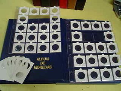 Lote formado por: 100 Hojas tamaño folio aprox. para 20 cartones de monedas + 2000 cartones para monedas tamaños a elegir.