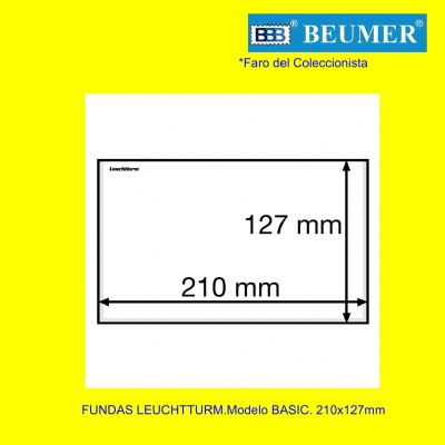 Fundas LEUCHTTURM, modelo BASIC; para Billetes. Tamaño: 204x123mm. Soldadas por 3 lados y libre el superior. Paq.50 unidades