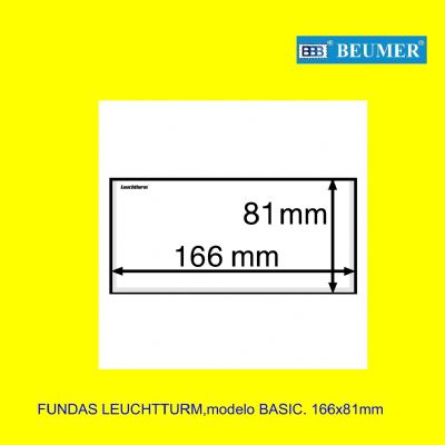 Fundas LEUCHTTURM, modelo BASIC; para Billetes. Tamaño: 166x81mm. Soldadas por 3 lados y libre el superior. Paq.50 unidades