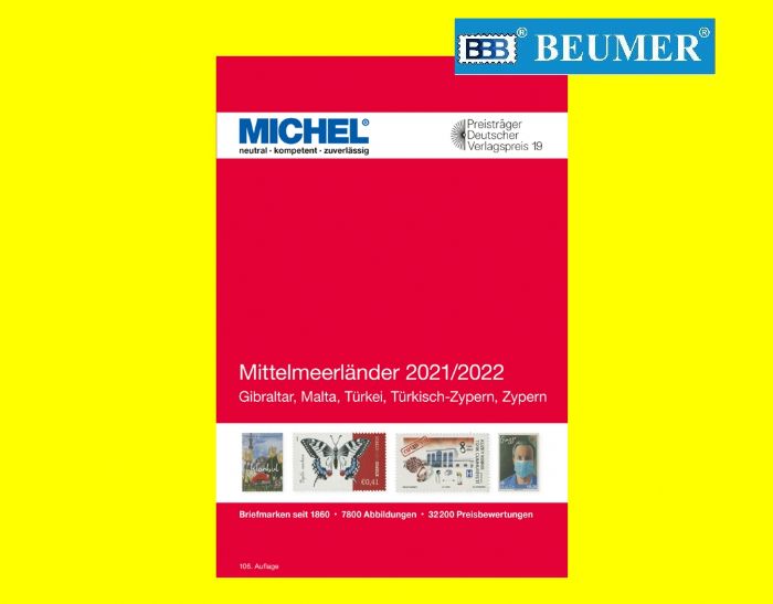 Catálogo MICHEL países mediterráneos: Gibraltar, Malta, Türkei, Türkisch-Zypern, Zypern.Edición 2021.A color.