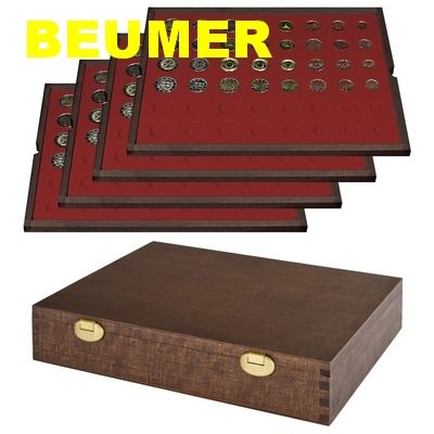 Estuche madera CARUS con 4 Bandejas.Monedas hasta 30mm.diámetro.