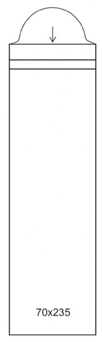 Estuche plástico transparente con solapa de cierre: 70x235mm. Paq.50
